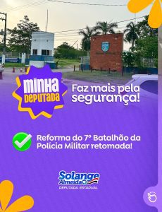 A deputada estadual Solange Almeida segue ampliando as ações voltadas ao fortalecimento da segurança pública na região. Em publicação recente, a parlamentar anunciou a retomada da reforma do 7º Batalhão da Polícia Militar de Pindaré-Mirim, uma demanda antiga que busca melhorar tanto as condições de trabalho dos policiais quanto a qualidade do atendimento prestado à população.